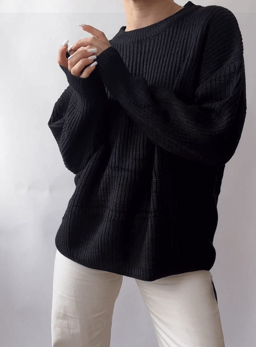 Ищете идеальный свитер на повседнев, который сочетал бы в себе стиль, комфорт и качество? Наш черный вязанный женский свитер оверсайз – это именно то, что вам нужно. Каждый элемент этого свитера говорит о том, что он создан с любовью и вниманием к деталям.